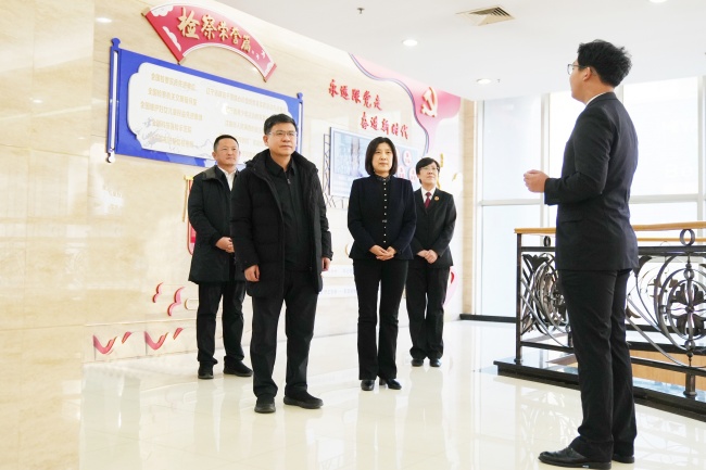 辽宁省检察院党组书记、检察长高鑫(左二)在沈阳市皇姑区检察院看望慰问一线检察干警并调研相关工作。